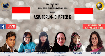 “Asia Forum-Chapter 6 Indonesia” which is an offshoot of the Asian Literary Society and Journal of Asian Art, Culture and Literature (JAACL) took place on August 8th, 2021 at 1800 hours IST and 1930 hours WIB on the virtual forum of Asian Literary Society Facebook Page.